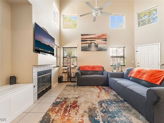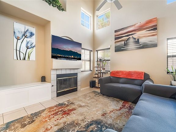 Charming 3-bedroom, 2.5-bath townhouse in a gated Las Vegas community. This home offers 1,338 sq. ft. of living space with vaulted ceilings, natural light, and a cozy fireplace in the living room. The functional layout includes a separate dining area, kitchen with ample cabinet space, and a dedicated laundry area. Upstairs features three well-sized bedrooms, including a primary suite with private bath. The property also includes a 2-car attached garage and a private backyard with low-maintenance landscaping. Community amenities include gated access and exterior maintenance. Conveniently located near the airport, UNLV, shopping, dining, and the Las Vegas Strip, this home combines comfort, function, and accessibility in a desirable setting.