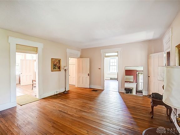 1803 – yes 1803 home on the hill sitting on 2.75 acres just minutes from Yellow Springs. House is being sold “as is where is” cash only. It needs work – you bet! But the end result will be unbelievable! From the wood floors to the tall ceilings. There is character in abundance. The huge windows make it bright and majestic. The foyer leads to the living room with WBFP (or second first floor bedroom). Then the large family room which leads to the sun porch – across the hall the large kitchen with butler’s pantry is next to the large dining room and an ensuite bedroom. Take the stairs to the second floor and take in the large upper foyer. There is a bedroom that connects to a large sitting room and laundry area. There are 2 more large bedrooms and a surprise back apartment area and full bath. There are so many possibilities. There is a two-car garage. The yard is waiting for the right visionary to bring out the beauty and gardens to compliment the home and property. The outdoor fireplace will be magnificent. The driveway is shared with the parcel to the north. WBFPs not warranted.