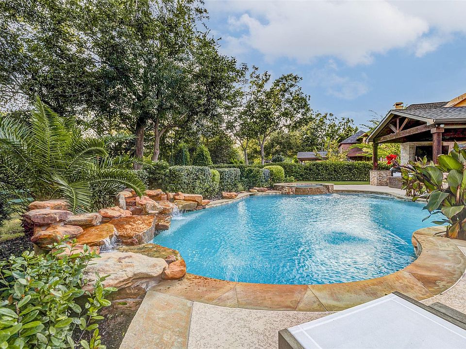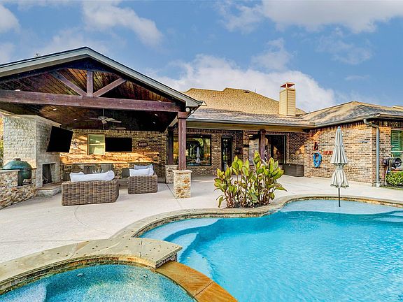 Welcome to 5323 Lake Hill Farm Way, a stunning 4/5-bed, 3.5-bath home on nearly a 1/2 acre in the prestigious Fulbrook on Fulshear Creek community. Timeless curb appeal shines with a stone-&-brick exterior, peaked gables, & arched windows, while inside, a grand foyer showcases hardwood floors, soaring ceilings, & a striking staircase. The chef’s kitchen impresses with 42-in cabinetry, quartz counters, double ovens, & an oversized island with a professional gas cooktop. Open family room features a corner fireplace, built-ins, & a wall of windows overlooking the backyard retreat. The primary suite offers a spa-inspired bath with dual vanities, frameless shower, & freestanding tub. Upstairs, a spacious game room & well-appointed secondary bedrooms add versatility. Outdoors, enjoy a covered patio with fireplace & kitchen, plus a resort-style pool with spa, tanning ledge, & waterfall. Additional highlights include a finished 3-car tandem garage with epoxy floors & StoreWALL system.