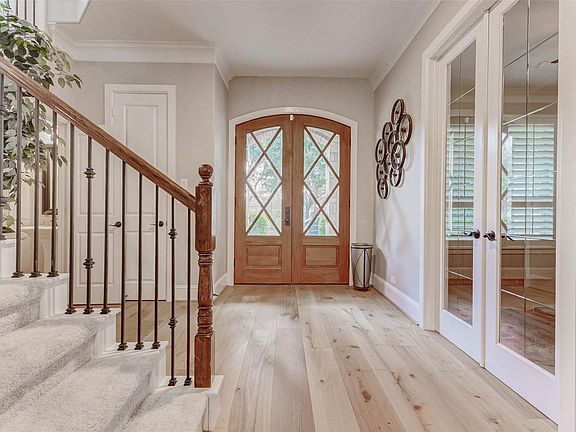 Corner fireplaceBackyard retreatGrand foyerWall of windowsHardwood floorsArched windowsQuartz counters
