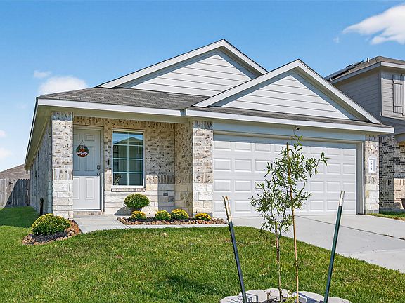 Introducing this beautiful D.R. Horton ranch-style home, thoughtfully crafted in 2023. This charming 3-bedroom, 2-bath is nestled in the friendly Breckenridge community, where neighbors become friends. Step inside and feel the warmth of the inviting open floor plan, featuring soaring ceilings creating a spacious atmosphere. The modern kitchen, complete with a breakfast bar and a generous walk-in pantry, is perfect for whipping up your favorite meals and gathering with loved ones. The well-designed split floor plan ensures privacy, with the primary suite located at the back of the home. Imagine enjoying peaceful evenings in the backyard, relaxing under the covered patio. Situated in a cozy cul-de-sac, this home offers both safety & tranquility. When summer rolls around, you’ll love having community playgrounds just a short stroll away! With easy access to major highways, dining and entertainment, you’ll find everything you need right at your fingertips. Schedule your showing today!