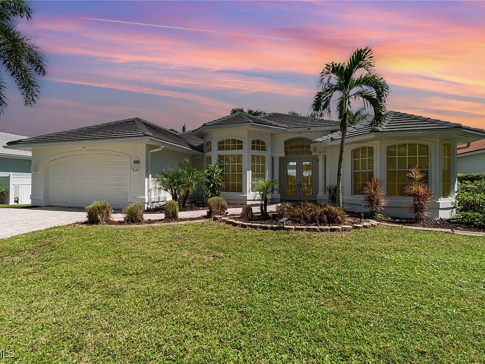 Welcome to your waterfront paradise in the coveted Peninsula Pointe of SW Cape Coral. Perfectly situated on a 200’ wide deep-water sailboat canal with no bridges and quick Gulf access, this beautifully furnished, turnkey home offers 2,220 sq. ft. of elegant living. A grand glass French double-door entry opens to the great room, where floor-to-ceiling windows fill the space with natural light and frame sweeping canal views. Multiple sliding doors connect to the expansive screened lanai with heated pool and plenty of space for entertaining. Enjoy sunrise over the water, or relax on your private dock with a 9,000 lb boat lift, a separate boat slip, and a wraparound deck while dolphins play in their natural surroundings. Inside, you’ll find 3 spacious bedrooms plus a versatile den, 2.5 baths including a convenient pool bath accessible from both inside and out, a dedicated dining area overlooking the canal, breakfast bar seating, and a kitchen with stainless appliances, wine fridge, and custom built-ins. Crown molding, cathedral ceilings, oversize tile floors, and custom hand-painted walls add character, while the primary suite and abundant closet space provide comfort and style. Additional features include a 2-car garage, laundry room with washer/dryer and tub, auto sprinklers, ceiling fans in every room, hurricane shutters, and a new roof (2023). With stunning curb appeal, no HOA, and no rental restrictions, this residence is ideal for investors, vacationers, or full-time living. Currently operating as a successful vacation rental, it offers immediate income potential. Walking, biking, or golf carting distance to Cape Harbour’s restaurants, boutiques, coffee shop, and live music, plus nearby groceries, medical services, and entertainment - this is the ultimate Florida lifestyle.