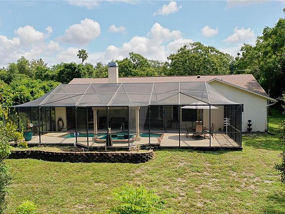 You don't want to miss this beautiful 3 bedroom, 2 bath home in the quiet neighborhood of River Country. This home has so much to offer! Sitting on .51 an acre, backed up to the no-build nature preserve, with a fully fenced in yard and an oversized pool lanai featuring a beautiful in ground pool, in ground spa, pillar waterfall and outdoor kitchen. Inside the home you will find a sunk in living room with wood floors; the rest of the home has well cared for porcelain tile flooring. The kitchen has been updated with custom cabinets, stunning granite countertops and stainless steel appliances. The sunk in living room features a wood burning fireplace for those chilly winter nights. The spacious dining room features plantation shutters and plenty of space for hosting friends and family. The master bath has both a bathtub and separate walk in shower, all updated within the past few years, along with beautiful countertops. Close to all shopping and amenities. This home is a MUST SEE!