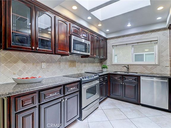 Lovely upper remodeled Casa Vista Condo (2bd/2ba) with a large enclosed sunroom and no stairs. The kitchen has been remodeled with stainless steel appliances, new cabinets, granite countertops, a large skylight and recessed lighting. The windows and sliding glass doors have been upgraded throughout the home. A full size washer/dryer is located in the hall closet for easy access. The primary suite is generously sized for a king size bed and includes an en-suite bathroom and a walk-in-closet. Other features include central air/heating, smooth ceilings, a whole house attic fan, carpet & tile flooring, and parking close by. Located in Laguna Woods, enjoy all the amenities the Village has to offer: 27 holes of golf plus a separate 9-hole walking course, tennis courts, separate pickleball courts, 5 swimming pools, 3 fitness centers, bridge card room, 7 club houses, computer rooms, over 200 clubs to participate in and much more. There is free bus transportation. The unit includes: water, trash, basic cable, landscaping, and exterior building maintenance plus access to all Laguna Woods Village Facilities. You are within 15 minutes of Laguna Beach and extremely close to great shopping and restaurants. Come and see this move in ready home.