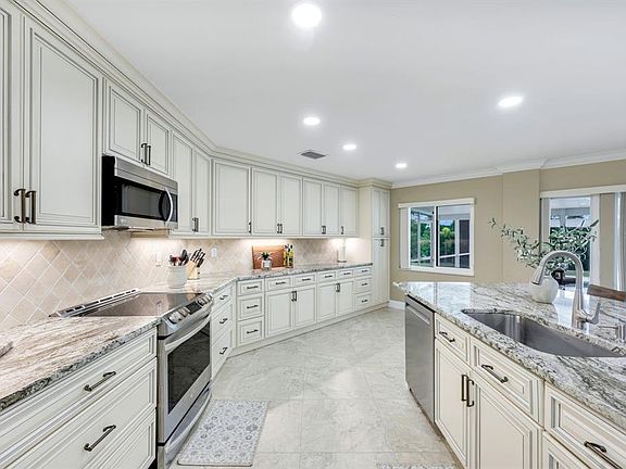 Welcome to this recently renovated 2-bedroom, 2-bathroom with BONUS ROOM, waterfront pool home in Gulf Cove! With solar panels, you can enjoy the Florida lifestyle while significantly reducing or even eliminating your electric bill. This eco-friendly feature, coupled with a newer roof and AC system, provides a modern and efficient living experience. With direct Gulf access, you're just a five-minute boat ride to the Myakka River for fantastic fishing and relaxing days on the water. Imagine enjoying your morning coffee on the back porch while watching manatees swim by. The location is ideal—minutes from shopping, dining, medical facilities, and numerous golf courses. You're also a short drive from beautiful beaches like Englewood and Boca Grande. With easy access to I-75 and the Charlotte Sports Park, everything you need is within reach. This home features an expansive open floor plan, perfect for entertaining. The spacious great room, dining room, and kitchen flow seamlessly together. The kitchen is a chef's delight, complete with granite countertops, a large island, stainless steel appliances, and abundant cabinet space. You'll find beautiful tile flooring throughout the entire home. The master suite offers a peaceful retreat with a tastefully updated en-suite bathroom featuring a walk-in shower and new fixtures. It also includes a walk-in closet with built-ins for optimal organization. A second bedroom is located on the opposite side of the house, offering privacy and its own remodeled bathroom. A third room provides flexible space, ideal for a home office or an additional bedroom. Recent updates include a new roof in 2024, a completely replaced AC system with new ductwork, and updated plumbing and electrical wiring. The home is also equipped with impact windows and a solid hurricane-proof entry door for peace of mind. Step outside to your backyard oasis, where a private pool awaits. Boaters will love the boat lift with a remote controlled, canopy and quick access to open water. The oversized parking area provides plenty of room for an RV and a boat. The two-car garage features a newly finished floor and extra storage cabinets, perfect for keeping your tools and fishing gear organized. Gulf Cove offers a voluntary HOA with a private community boat ramp and park, adding to the allure of this waterfront community. This is a true boater's dream home, offering a waterfront lifestyle with all the modern amenities and the added benefit of solar energy.