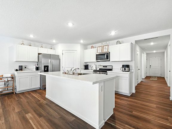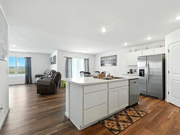 Welcome to this newly built 2024 Chatham floor plan, where quality craftsmanship, modern design, and desirable features come together to create the perfect home. Offering 1,771 square feet of thoughtfully designed one-level living, this home features 4 bedrooms and 2 full bathrooms. The open-concept layout is both functional and inviting, featuring a spacious kitchen complete with a large island, ample pantry space, light grey shaker-style soft-close cabinetry, and attractive countertops. The kitchen flows seamlessly into the living and dining areas, making it ideal for both everyday living and entertaining. Just off the dining space, enjoy a covered patio overlooking a fenced-in backyard with a beautiful pond view, perfect for relaxation and gatherings. The private primary suite offers a retreat of its own, with a walk-in shower, double vanity, separate toilet room, and a generous walk-in closet. Three additional bedrooms are well-sized, providing comfort and flexibility for family, guests, or a home office. Additional highlights include a 2-car garage, modern finishes throughout, and a stylish exterior. Move-in ready and designed with today’s lifestyle in mind, this home combines elegance, efficiency, and convenience in one beautiful package.