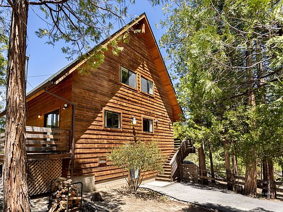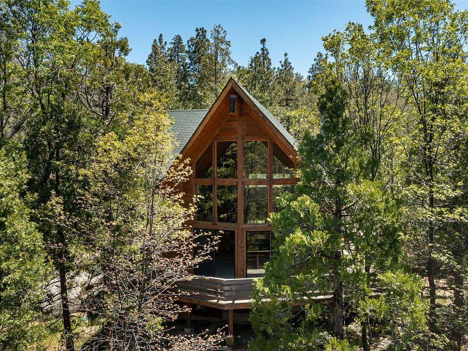 Grand Modified A-frame in .97 Ac. of Woods w/ Seasonal Creek. Come see this spectacular Cabin in the woods with eye-catching floor to cathedral ceiling picture windows with forest and distant mountain views nestled among 2 lots for a total of .97 acres for ultimate privacy. The entrance to this cabin greets you with beautifully crafted dutch doors with unique hardware. Make that picture window the first and last thing you see by using the expansive loft as the master bedroom, or choose from the 2 large bedroom in the lower level, one with French doors leading to the backyard with beautiful natural rock landscaping. The lower level also holds a full bathroom, while the main level has a 3/4 bathroom with a large shower. Enjoy entertaining your guests in the open concept living area with extra tall cathedral ceiling that opens to the dining room and kitchen. The sliding glass doors in the living room open up to the wrap around deck. This home is being sold as is. Price to reflect the minor deferred maintenance.