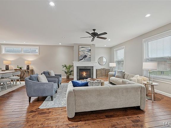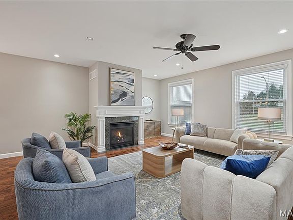 Upstairs are 3 large bedrooms and laundry. The primary suite has a walk-in closet and fabulous renovated bathroom with upscale finishes including the custom tiled, glass enclosed shower with double heads. Finished walk-out basement offers a huge recreation room with bar, 4th bedroom and full bathroom. The real star of the show is the 18x36 heated salt water pool with brand new liner, fountain sprayers, composite deck, patio, vinyl privacy fence and landscaping. Your summertime plans are set! There's also a massive oversized 2 car garage. This home along the parade route is just a short walk or golf cart ride away from 50+ restaurants, small businesses and festivals at Berra Park. You'll never run out of things to do. All new windows and slider door in '24. Zoned HVAC. Homes like this rarely become available. Don't miss this opportunity to establish your forever home in the best neighborhood in St. Louis.