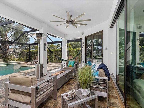 Lanai/Pool/Dock: The lanai will have you practically living outdoors. There is a dining area with seating up to six and a separate lounge area. There are sun loungers and a hammock available for you after you take a dip in the electric heated pool or spa. The outdoor kitchen with a built-in propane grill and refrigerator will give you all the comforts you need to have incredible dinners poolside. After dinner, make your way down to the dock to sip a glass of wine to enjoy the beautiful water views. Enjoy your boating pleasure with the two docks available (the boat lift is not available for tenant use). You can also take a lovely bike ride in this quiet neighborhood.