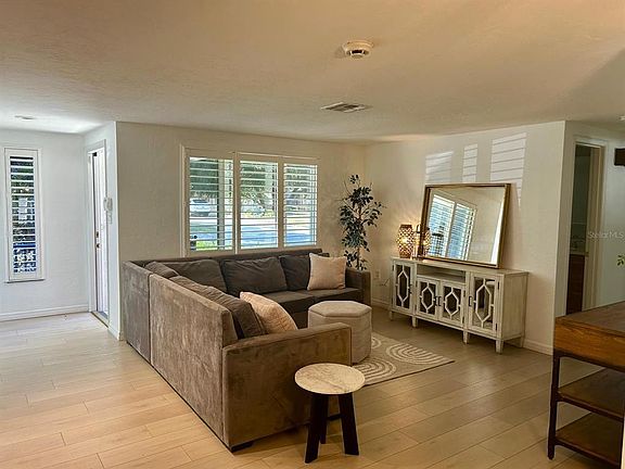 Cute updated home is a great neighborhood, ideally located close to shopping and dining options, and a quick drive to beaches and the freeway. 3 bedrooms all with walk in closets, 2 updated bathrooms, kitchen with granite counters and stainless appliances, plantation shutters on all windows, one car garage with laundry hookups, a nice size screened lanai, and a large fenced yard with 2 sheds for storage. Interior has been freshly painted. Newer impact windows, almost new AC, new fridge and dishwasher. Excellent rental history at $2500 a month. Not in a flood zone! On public sewer and water. Roof is 17 years old, but in good shape according to seller.
