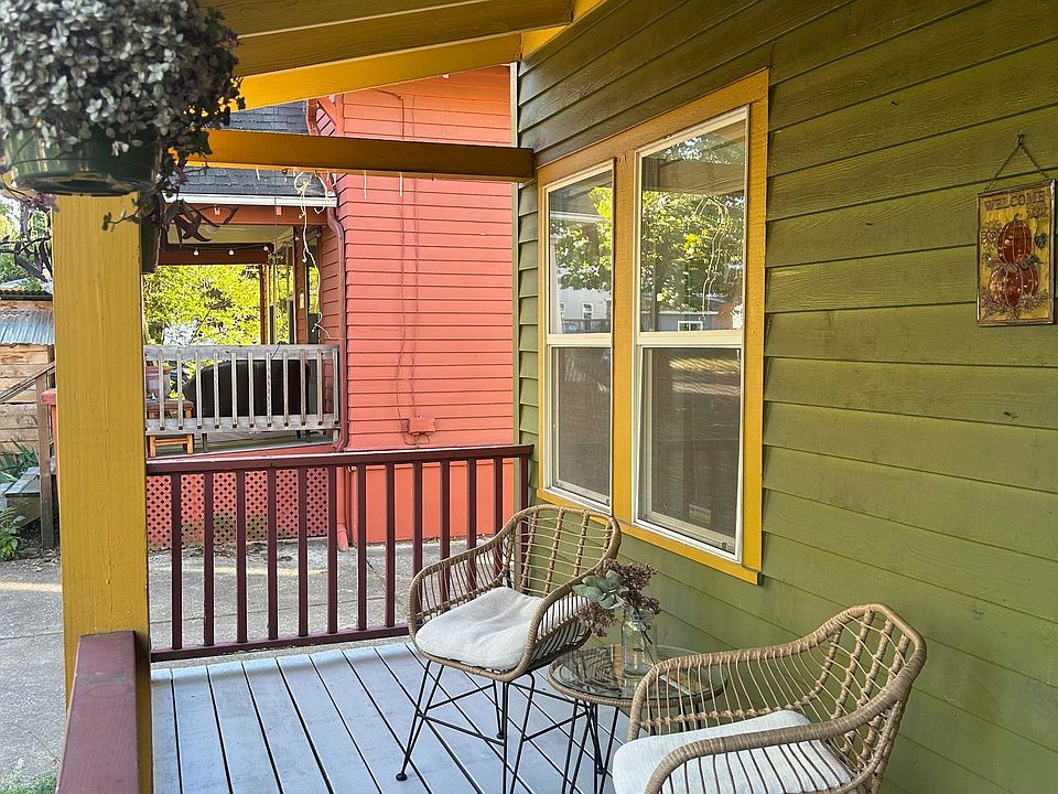 This is our first family home and we would love to share this great space with you! The home offers the practicalities of easy living and the joys of being in the heart of Alberta Arts District. It has three bedrooms and two full baths. There are multiple closets for storage and a shed for additional outdoor storage. There is a washer and dryer right off the kitchen. The bedrooms and main living area have cozy carpet and the kitchen and dining room have linoleum. Outside there is space for off street parking. With sliding glass doors opening to the back porch, the home has multiple options for outdoor living to relax and garden. There is a brand new fence and private backyard with two covered deck areas, a large front porch to watch the sunrise and a garden bed in the privacy of the back yard to garden to your hearts content. The house is an attached house and shares one soundproof common wall. The house is located between Alberta and Killingsworth in the center of Alberta Arts District. It is easy walking distance to Hat Yai, Podnahs, Harlow, The Alberta Food Co-Op, Bollywood and Salt n Straw, etc. Bus stops are within a block for frequent service to downtown and OHSU for easy commuting. Walk Score is 90. Bike Score is 79. Terms and Conditions: Pets Ok (small dog or cat), Non smoking Monthly rent is $2600 (Property owner pays for recycling, trash, compost service and yard maintenance). Rental agreement for 1 year. Application period starts Sunday November 16 at 9:30 pm. Please do not submit application before this time as the City of Portland requires an 8-hour penalty. Applications will be considered once all people in the party have submitted a complete application. Home does not meet accessibility requirements. Available December 15, 2025. Rent and deposits: $1300 security deposit (refundable) $3900 total move in cost (security deposit plus first month's rent) Owner pays garbage, yard maintenance. You pay electric, water, and internet.