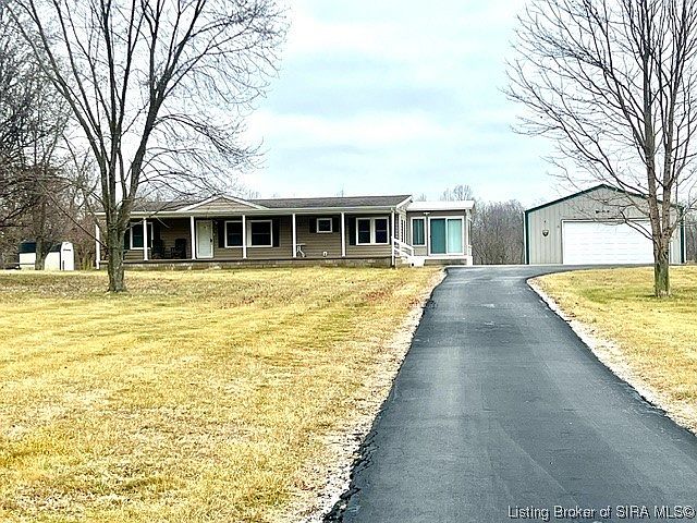 Fabulous opportunity in the countryside of Nabb! This manufactured home boasts over 1450 square feet of living space. There are 3 bedrooms and two full baths. The en-suite to the primary bedroom offers an updated jetted tub. There are two sizable closets in this bedroom. The flooring throughout the home has been updated, with vinyl plank in the living room. The home is nicely maintained and MOVE-IN-READY. Situated on over two acres, this home has a long and nicely paved driveway. The driveway has a turnaround area, or a great place for a Hoosier-home basketball area! The generously sized front porch offers very nice polished cement finishes, from stairs to threshold. The property offers a two car garage that really rounds off the overall functionality of this property. Come check her out!
