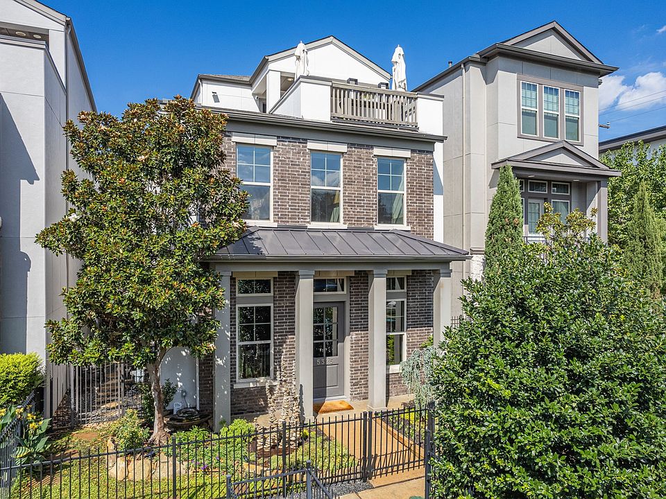 spectacular single-family residence, originally the model home is a perfect modern turnkey retreat, enjoy designer upgrades and hardwood floors throughout, with 3 Bed, 3.5 bath and 2 living areas, all overlooking gorgeous community pool. First floor showcases soaring ceilings, lighted glass cabinetry, custom linen drapes, and open layout with spacious living and dining areas flowing into large chef's kitchen with seated island, walk-in pantry, gas cooktop, Samsung high-end smart refrigerator, granite countertops. and glass double door to private patio plus side yard perfect the first floor. The oversized 2-car garage includes EV charger, storage closets and slip-resistant epoxy flooring. On second floor, the spacious primary suite is a true sanctuary with spa-like bath, featuring garden tub, separate shower, water closet, elegant hardware and marble double-sink countertop, leading to breathtaking custom-built walk-in closet with lighted glass and stained oak cabinetry, marble- topped vanity, chandelier and wood floors with direct access to modern laundry room with leather granite countertop. Two spacious guest rooms each with walk-in closet, and updated full bath with marble countertop complete this level. The third floor offers versatile living space ideal for den, home office, fitness center, or guest suite, with newly updated full bath featuring marble-tiled shower, marble countertop, and stone tile floors. Walk out to expansive rooftop deck quipped with built-in grill, refrigerator, and faucet, perfect for entertaining while enjoying serene views of the sparkling pool below. Additional upgrades include new roof (2021), whole home automation with smart security, cameras, lighting, and premium built-in speakers, inside and out. Most lighting is dimmable with customizable color options adding ambiance and sophistication. Enjoy exceptional community amenities, including yard care, dog parks, and resort style pool, ensuring a lifestyle of ease and luxury.
