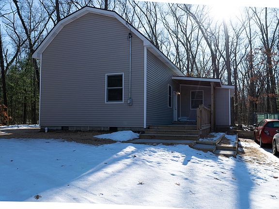 Only 2 year old newly built 1 1/2 story story cottage with double lot adds a nice open concept feeling as you walk in. To nave 90 degree temps seller claimed he uses 4 tons of pellet that cottage gets very hot. Has knotty pine throughout. Across the house is State Game area. Main floor 960. The double loft upstairs can be used for guests visiting also possible to make it into guest rooms.