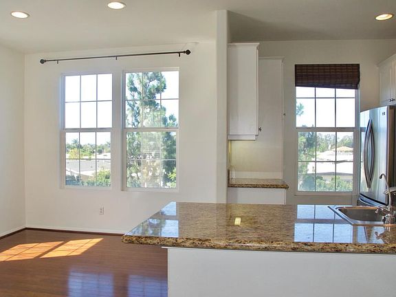 This great upper-level corner unit in the Melody Community offers 2 bedrooms and 2 full baths with a single car garage and driveway for another car. The charming condo features beautiful wood floors, stainless steel appliances, granite counters, interior laundry closet with stackable washer/dryer, recessed lighting and a private balcony. This unit overlooks a huge greenbelt and enjoys privacy from other buildings. This community is walking distance to Thille Park, shopping, freeway access, & restaurants. Plus there are bike and walking paths near by. You'll love the lifestyle here!