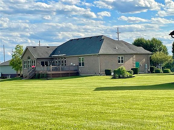 Pristine! Trophy Property! Former Home Arama Home! Ranch! Approx. 4,600 SQFT! 3BDRM, 3Full, 1 Half Bath, professionally finished lower level w/in-law suite & Walk up! 2 car attached garage! 2 car detached garage 32X40 w8X10 roll up doors, heated & storage! Large pole barn 36X54 W/14X16ft roll up door, 17 ft ceiling, 200 AMP service, heated, insulated & concrete floor. Tree lined concrete driveway! 5.85 acres! Beautifully landscaped! Open foyer & floor plan! Gourmet kitchen w/maple cabinets, pull out drawers, 3 lazy susans, island, counter bar, pantry, granite cntrtps, tile BKSP & SS appliances! Formal DR! Formal LR w/FP, Hearth, Mantle & Wall of windows! GreatRM w/walls of windows&WO to deck! 1st flr study/3rd BDRM! Primary w/wi closet, hearth & mantle! New Spa bath w/jaq tub, full glass shower & DBL vanity! 1st flr laundry! LL w/bdrm, full spa bath, familyRM, Kitchen, Bar, MechanicsRM, StorageRM & Walk up! Beautiful Crown Molding & HRDWD flrs! Generator 40KW/185AMPS*50 Year Roof*