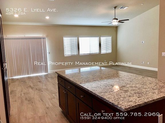 Built in 2019, Energy Efficient, Move in ready. This 4 bedroom 2 bathroom home has 1725 sq. ft. built by Lennar, the Foxtail model at the California Series at Daffodil Hill near Sunnyside Country Club. Kitchen has center island, granite countertops, dark wood cabinets. Stainless appliances include gas range, oven, microwave, dishwasher. Open floor plan, dining and great room area, ceiling fan and slider to the backyard. Master bedroom has en suite bathroom with dual vanities, shower and walk in closet. Three additional bedrooms. Hall bathroom has a dual vanity and tub/shower. Interior laundry with gas and electric hook ups. Energy efficient with Solar panels and a tankless water heater. Attached 2 car garage. Tenant responsible for yard care. NO Pets. No smoking. No more than 2 unrelated adults. Renter's insurance is required. Cross streets are Butler & Peach. DRE# 01901101. All information is deemed reliable but not guaranteed and is subject to change. Status: Active. Bre# 01901101. Non Smoking. Renter's Insurance Required