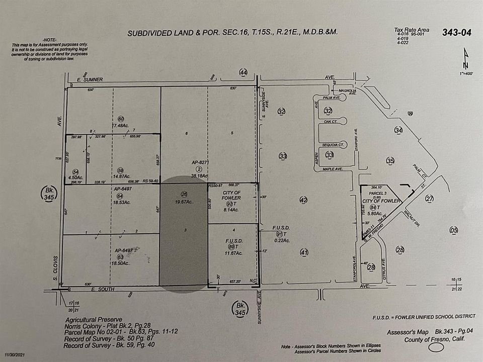 Potential subdivision property.19.67 Acres located on E, South Street, in between South Clovis and Sunnyside Avenues, ideal for future development. Property currently has some grapes being farmed. Property sold "as is".Please note that the address in the listing is for GPS purposes only and not the actual site address.