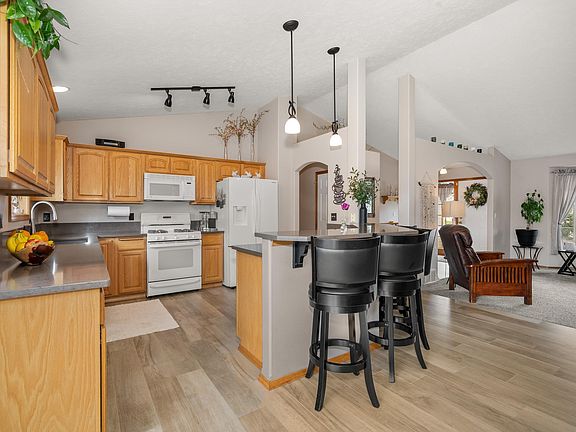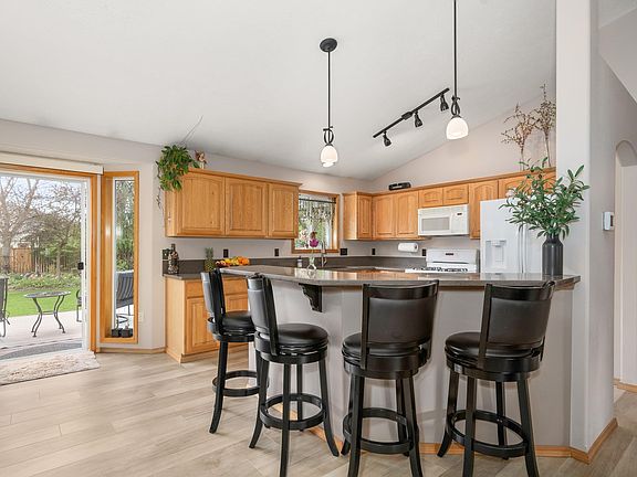 Meticulously maintained rancher, nestled in the coveted Brighton Place neighborhood. Here, tree-lined streets welcome you, adorned with ample green spaces, meandering sidewalks, and a covered gathering spot invites picnics, while pickle ball courts add a dash of friendly competition to the vibrant community atmosphere. Just moments away, the allure of Greenbluff farms and its array of activities. Your own private oasis and back yard retreat with easy-care perennial gardens, expansive decks, and nature’s ever-changing palette with flowering points of interest that delight throughout the seasons. A cedar storage shed conceals a hidden parking spot. Inside, an open floor plan welcomes you, cathedral ceilings, Italian tile plank floors throughout, kitchen adorned with quartz countertops and a multi-level eating bar, perfect for entertaining. 3 main floor bedrooms and laundry. Full basement has spacious 4th bedroom, craft room/office, and versatile movie/rec room await. Mead School District.
