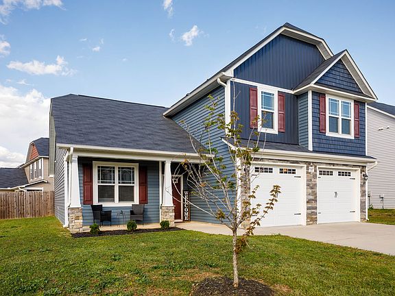 Spacious 4-bedroom home with an open floor plan located in a family-friendly neighborhood featuring a community pool, clubhouse, and playground. Ideal for families needing a first-floor guest suite complete with a full bath and walk-in closet. The home boasts a large family room with vaulted ceilings and a cozy fireplace, as well as a generous eat-in kitchen with granite countertops, an island, and a walk-in pantry. The oversized primary suite offers a trey ceiling, a luxurious bath with dual vanities, a soaking tub, separate shower, and a large walk-in closet. Upstairs, you'll find two more spacious bedrooms, a full bath, and a convenient laundry room. Enjoy outdoor living on the covered back patio overlooking a private, fenced backyard. Located in a desirable neighborhood right across from Grays Creek High School and Middle School.