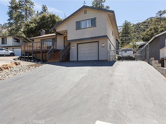 Welcome to 5327 Desert View Ct in the mountainous town of Wrightwood California. Nestled over 6,000 sq ft in elevation, this home offers one of a kind views from all angles. This 3 bedroom 2 bath home spreads out on multiple floors for a unique floorplan to maximize the comfort of the home. As you enter the property you will notice an abundance of parking space for multiple vehicles, your recreation toys, and space for an RV. The single car garage will keep your prized vehicle out of the elements. Ascend up the front porch stairs and enjoy the amazing view as far as the eye can see across the high desert. When you enter the home you will be greeted with the open spaced living room. The stone fireplace is a focal point of the home design. As you enter the kitchen you will notice expansive cabinetry which provides excellent storage. The dining area feels open and airy thanks to the sliding glass door which opens up to the backyard porch deck. The beautiful backyard is well manicured with minimal maintenance and roomy for entertaining. The first 2 bedrooms are located just a few steps to the upper level of the home. Both bedrooms are larger than your standard bedroom size. The bathroom boasts a stone counter and sink that is simply eye catching. The 3rd bedroom, which can also be used as an office space, is situated downstairs and has a dedicated sliding door for easy backyard access. Enjoy your very own mountain home without a long drive from the city. Desert View Ct is one of the most sought after cul-de-sac neighborhoods in Wrightwood, you will always look forward to coming home. Don’t let this opportunity slip away.