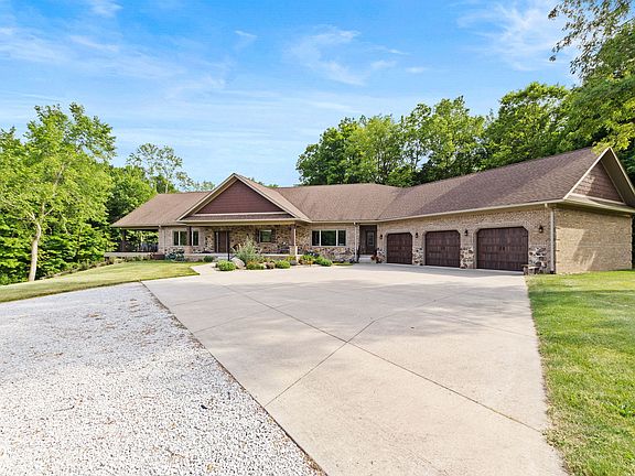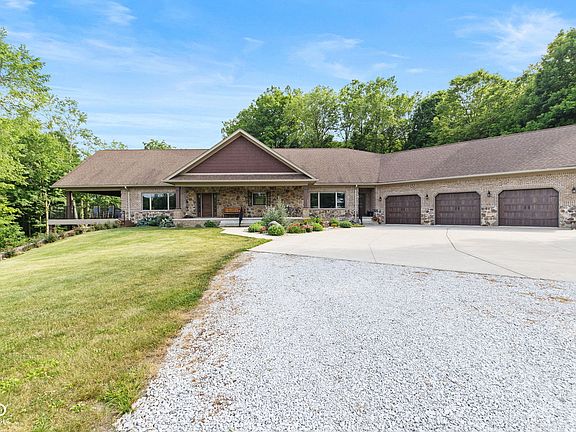 Welcome to a gorgeous retreat that will not disappoint-an absolute dream for nature enthusiasts. This custom-built home features an oversized, three-car attached heated garage with ample storage. Guests are greeted by impressive entry doors leading to an incredible kitchen, which boasts granite countertops, custom-made hickory cabinets, and a stunning stone focal wall accenting the built-in stovetop. A large center island invites gatherings, and the kitchen also includes a walk-in pantry and gunmetal finished appliances. Adjacent to the kitchen, you'll find a spacious dining room and great room combination. The impressive stone fireplace with a custom mantel sets a cozy ambiance, and large doors open to a covered deck perfect for outdoor entertaining, offering views of the stocked pond. The primary suite provides a luxurious, hotel-like experience, featuring a steam sauna in the shower flanked by marble walls and flooring. The fully finished walk-out basement is ideal for entertaining, with insulated flooring achieved through a Styrofoam process under the concrete. This space includes a large game room/media room, an additional bedroom with a full bathroom, and a complete kitchen. Step out onto the covered patio, which is plumbed for an outdoor kitchen, enhancing the entertainment experience. The property is surrounded by woods and includes a beautiful stocked pond with a dock. Completing this retreat is a 30x50 custom pole barn equipped with HVAC, water, and its own bathroom. This barn is perfect for RV enthusiasts, offering both 30 amp and 50 amp outlets. Enjoy your own little campground right at home! Geothermal system for energy efficiency and low utility bills! Located with easy access to I-74, this home is just minutes from Brownsburg and Indianapolis, combining convenience with tranquility. *No sign in yard