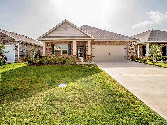 Beautiful PACE home, with close proximity to everything Pace, shopping, schools, medical. Perfect layout for a large family, or multiple generation house with the fourth bedroom tucked away. This area could be a teen suite, office, or guest room. Enter the home into the long foyer that is perfect for decorating. Gorgeous open kitchen, with large corner pantry, granite countertops, HUGE island with double sided cabinets underneath and an overhang large enough for bar stools. Stainless steel appliances include, dishwasher, refrigerator, built in microwave and stove. A nice size eat in area just off the kitchen allows for a larger table. This area opens up to the beautiful great room with double step up ceiling and pretty extra molding and lighting. Just off the great room is the master suite with step up ceiling, ceiling fan, vinyl plank floors. The master bath has a garden tub, huge walk in shower w/seat & built in shower door, double vanity, private toilet closet. Just off the master bedroom is the huge walk in master closet. Two other bedrooms are located off a small hall and have vinyl floors. Inside laundry room is located in this area as well. There is another bedroom and the second bath located off another small hall on the other side of the foyer. This area is very private and would be a great guest area, or home office, or second master area. Out back this home features a covered porch, the yard is fully fenced. This beautiful home has been meticulously taken care of by the current owner. All floors are a pretty vinyl plank. Extras Include: Gutters, garage door opener, fully fenced yard, doors w/blinds inside window, some blinds, washer and dryer (washer, dryer, and refrigerator all working perfectly, but not warranted, ie. will not be replaced if they quit working tomorrow). Tour today and you will definately want to make this sweet home yours!!