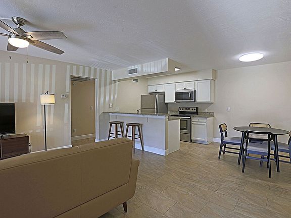 Expansive screened-in lanaiGranite vanitiesSleek granite countertopsCommunity poolTile flooringSpacious one-bedroomAdditional cabinet space