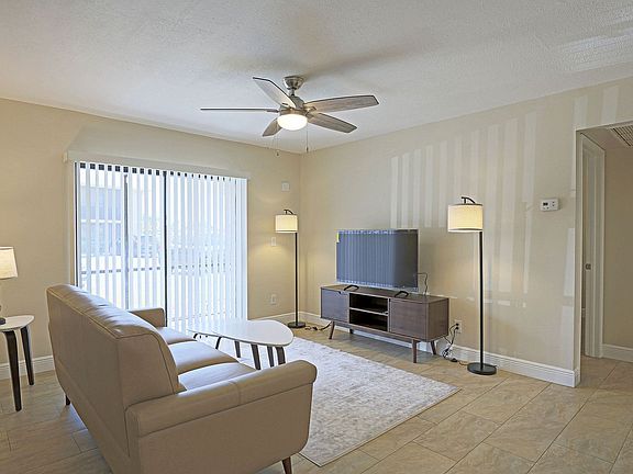 Welcome to this newly renovated first-floor condo in the Mystic Gardens community! Featuring a spacious one-bedroom, one-bathroom layout, this home is equipped with brand-new appliances, an in-unit full-size washer/dryer, walk-in closet, sleek granite countertops and additional cabinet space in the kitchen for extra storage. The bathroom upgrades include granite vanities, a newly tiled walk-in shower, and tile flooring throughout for a modern touch. Step outside to your expansive screened-in lanai and enjoy Florida's beautiful weather, or relax by the community pool.