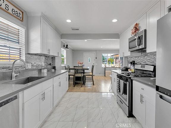 Nestled in the tranquil community of Quartz Hill, this charming residence offers a harmonious blend of comfort and modern style. The home boasts three inviting bedrooms and two well-appointed bathrooms within a thoughtfully designed 1,123-square-foot layout. As you enter, you're greeted by an open-concept living area featuring a cozy fireplace framed by a striking gray brick accent wall, setting a warm and welcoming tone. The adjacent kitchen is a culinary haven, showcasing pristine white cabinetry, gleaming stainless steel appliances, and elegant speckled gray granite countertops that complement the marble white tile flooring. A convenient pantry and laundry room are seamlessly integrated, enhancing functionality. Each bedroom is a peaceful retreat, complete with ceiling fans and sliding door closets, ensuring comfort throughout the seasons. The bathrooms exude contemporary flair, with gray vanities, tub-and-shower combinations, and modern square mirrors adding a touch of sophistication. Situated on a generous 0.40-acre lot, the expansive backyard presents endless possibilities for outdoor living, gardening, or creating your personal oasis. Additional highlights include RV access, central heating and cooling, and an attached two-car garage. This residence is more than just a home; it's a sanctuary where modern amenities meet timeless appeal.