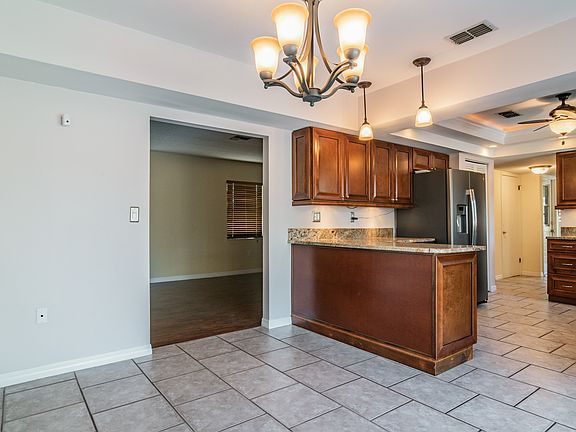 Charming 3 bedroom, 2.5 bath, two-story pool home in Sarasota. Upon entering this home, you are welcomed into a foyer with a formal living room to the right that features laminate flooring and a large picture windows to allow for natural light. Continuing through the foyer, you will arrive at the kitchen that boasts wood cabinets, stainless steel appliance package, granite countertops, and a stylish tray ceiling with accent lights. Overlooking the kitchen, there is a large dining room with tile floors, and a large sliding door that leads to the screened porch and lanai. Downstairs, you also have a cozy family room with sliding doors to the lanai and a wood burning fireplace. On the second level, you have the primary bedroom in the rear of the home and is complete with two closets, and an en suite bathroom with single vanity and a shower/tub combo. Completing the upstairs, you have 2 additional bedrooms with balcony access and a full size bathroom with a shower/tub combo. Outside, you can relax on the screened lanai and take in the Florida sunshine in your private pool and hot tub. For additional privacy, the large backyard has lush tropical landscaping and is full fenced. Located in Sarasota, this home is convenient to Clark Rd and I-75 and Siesta Key!