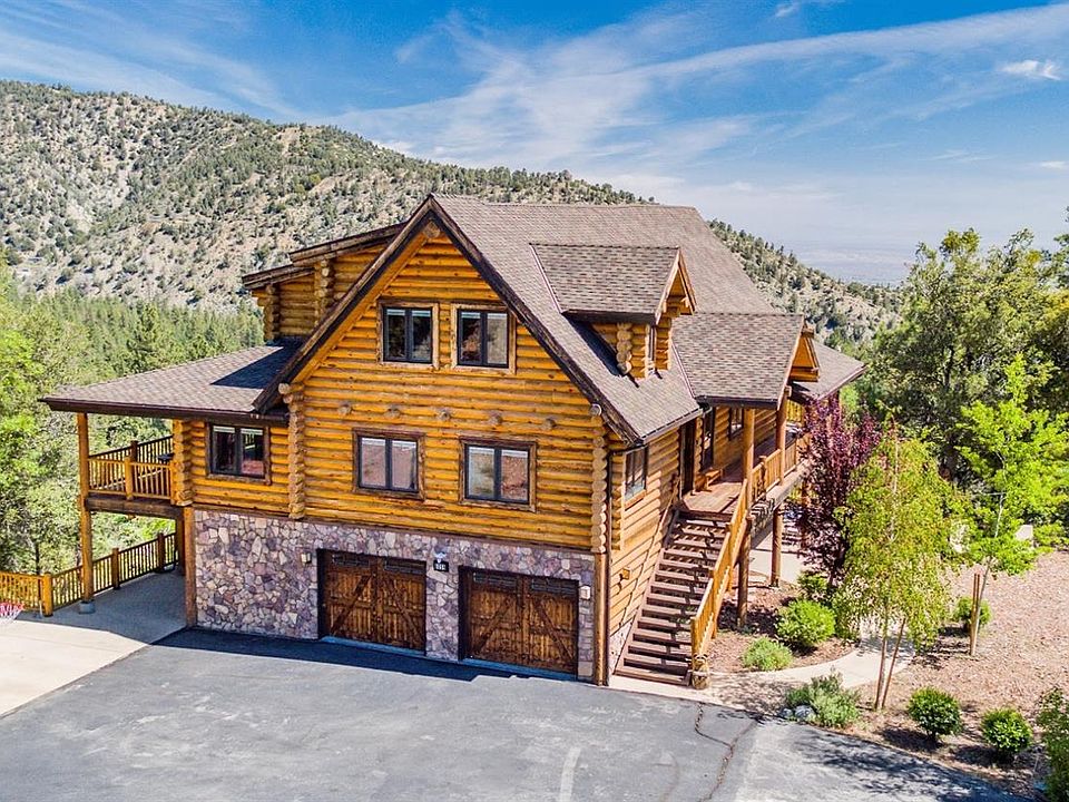 CHECK OUT VIRTUAL TOUR! Spectacular 360 degree unparalleled views. Fantastic precision designed full log home custom built by the owners, no expense spared, freshly painted throughout interior, located on over 3 acres on a secluded private driveway. Tremendous mountain views from 20 ft windows in a great room with beamed cathedral ceiling. Among the additional details: Precision craft custom designed log home - spuce pine and Douglas fir logs. Four bedrooms, includes spacious loft master suite and apartment suite with separate entry and bathroom. Pella windows and doors throughout. Indoor and outdoor fireplaces. Three bathrooms total. Hickory sandalwood flooring throughout 2nd and 3rd floors. Marble kitchen countertops and custom Jennair French door refrigerator, double convection Jennair stove. Wrap-around deck with pine deck railing, attached double garage with additional workspace and two storage closets. Huge open living, family and dining room which overlook spectacular views of the desert and mountains. Master suite encompasses the top floor w/ his and her walk in closets, double sink and steam shower. Additional bedrooms on main floor. Heated bathroom floors in all 3 bathrooms, designer light fixtures with hand blown glass, custom made towel racks and oil rubbed bronze finishes confirm the details throughout. See attached feature list document for additional details.