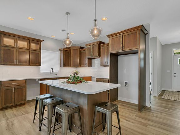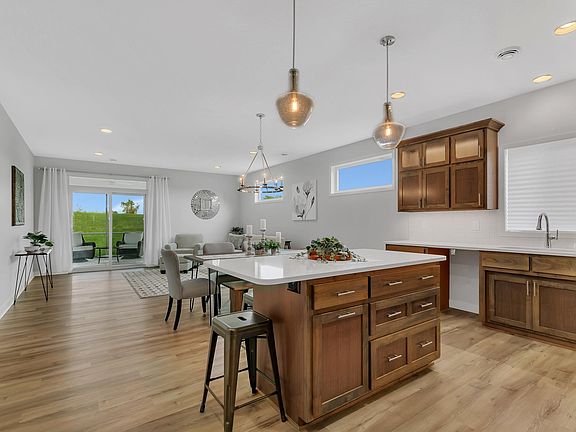 Beautiful Newly built this 1564 s.f. 3 Bedroom 2 Bath 2 Car Garage is ready for you! The custom cabinetsin Clear Alder with mission style doors and the gorgeous white quartz countertops invite you in! Thecenter island allows for extra seating and is equipped with convenient pots & pans drawers and a pullout recycle center. Featuring soft close cabinet doors and drawers! Sturdy luxury plank vinyl flooring throughout, carpet in the 3 bedrooms! Main floor laundry for your convenience! This home has a fully finished 2 car garage, insulated, drywall and painted! The concrete driveway and patios show the quality in this home. Enjoy the outdoor space in the 14 x 12 screened in porch. This home is located across from Territory Golf club in the Fairways patio home development. It has a homeowners association that is $60per mo. which takes care of snow removal and lawn care. This home has a $4500 appliance allowance included in the purchase price!