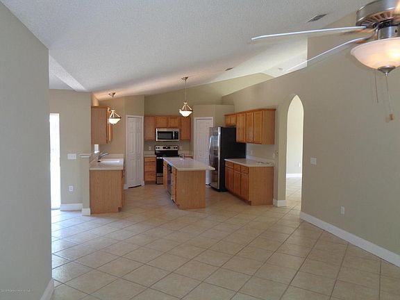Impressive 3BR/2BA home boasting nearly 2,000 sq. ft. of living space. The home has been freshly painted inside & offers a brand new A/C unit and privacy fence. The well designed floor plan features a formal LR, inside laundry, sizable bedrooms & a spacious great room with the kitchen overlooking the dining area and family room. The fully equipped kitchen offers a prep island, ample cabinet & counter top space, dual closet pantries and brand new stainless steel appliances. To help visualize this home's floor plan and to highlight its potential, virtual furnishings may have been added to photos found in this listing. All Information recorded in the MLS is intended to be accurate but cannot be guaranteed, buyer advised to verify. Sold As-Is. **Prior sinkhole activity has been remediated**