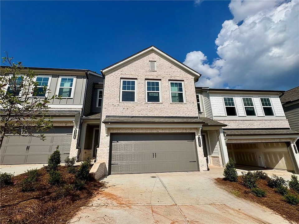 The popular Marigold plan is thoughtfully designed to make the most of every square foot, offering both comfort and style. This 1,800 sq. ft. townhome includes a 2-car garage with a full-sized driveway, providing plenty of parking. Inside, you’ll find 3 bedrooms, 2.5 baths, and a fantastic back covered patio perfect for relaxing outdoors. The sunlit main level features a spacious family room that seamlessly connects to the kitchen and dining area. The kitchen is a true highlight with painted cabinets, a large island with seating, quartz countertops, a designer backsplash, and stainless-steel appliances—making it as beautiful as it is functional. Just off the dining area, the private covered patio offers the perfect spot to unwind or entertain. Upstairs, the serene primary suite provides a peaceful retreat with a spa-like bath featuring double vanities, a tiled shower, and a generous walk-in closet. Two additional bedrooms, a full bath, and a conveniently located laundry room complete the second floor. Located in the heart of Flowery Branch near the scenic shores of Lake Lanier, Eastlyn Crossing offers a stunning collection of single-family homes and townhomes in a vibrant community. Enjoy the charm of historic downtown Flowery Branch, where you can stroll through unique boutiques, relax in cozy cafés, and browse the local farmer’s market. Spend your days exploring nearby attractions, from Alberta Banks Park’s tennis courts and playgrounds to the recreational opportunities at Lake Lanier Islands, including hiking trails, golf, waterslides, and lakeside dining. Closer to home, residents can relax by the cabanas at the pool or enjoy a friendly game on the pickleball courts. At Eastlyn Crossing, you’ll find the perfect balance of comfort, connection, and adventure. This home has a projected delivery date of October 2025. For further details and information on current promotions, please contact an onsite Community Sales Managers. Please note that renderings are for illustrative purposes, and photos may represent sample products of homes under construction. Actual exterior and interior selections may vary by homesite.