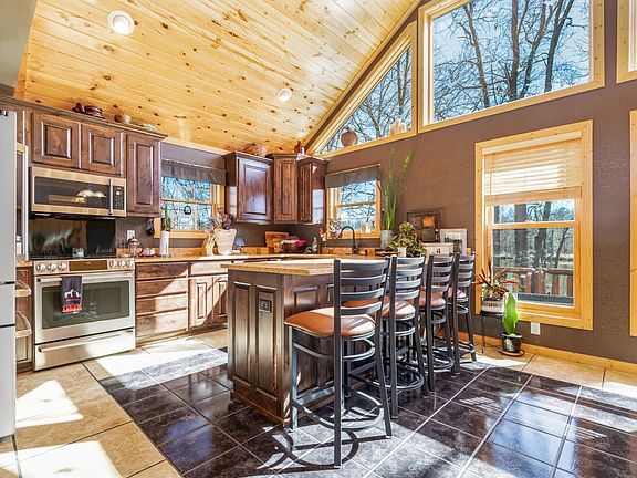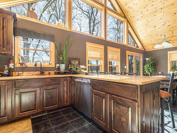Nestled along the serene banks of the Crow Wing River, this remarkable home offers a perfect blend of natural beauty and modern comfort. As you approach, the stunning views of the river set the stage for a truly special living experience. The home's location provides a tranquil retreat, perfect for those seeking peace and connection with nature. Step inside, and you are greeted by a spacious and inviting interior. The kitchen is a culinary gem, featuring Alder Cabinetry and gleaming granite countertops, reflecting a commitment to quality and style. The adjacent dining room seamlessly connects to a deck that overlooks the river, creating an ideal space for entertaining or simply enjoying the scenic views. The living area is warmed by vaulted pine tongue and groove ceilings, offering a cozy and rustic feel. The main floor bathroom is equipped with a jetted tub, providing a luxurious retreat for relaxation. With three bedrooms and two bathrooms, the home offers ample space for family and guests alike. Practicality meets comfort in the finished and heated two-stall attached garage, ensuring convenience year-round. Outside, the fire pit area invites gatherings under the stars, while the panoramic views of the river captivate the senses. The large 30x40 detached garage offers versatility, whether used for storage or a workshop. This home is more than just a place to live; it's a lifestyle choice, offering a harmonious balance of beauty, comfort, and functionality. Embrace the opportunity to own a piece of this serene riverside haven, where every day is a chance to appreciate the simple joys of life.