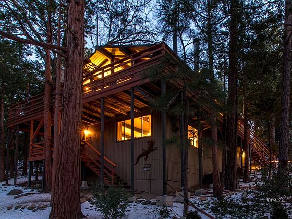 Sitting on a beautifully wooded hillside, this lovely cabin is perfect for full time living or a weekend get a way. Situated up high for privacy and treetop views. Wrap around deck for outdoor relaxing or entertaining. There is a huge oak tree providing summer shade for deck sitting. The living area boast beautiful open beam cathedral ceilings with a spacious open living, dining and kitchen area. The stone fireplace brings in the cozy while watching the snow fall. The main floor has two bedrooms and two bathrooms as well as laundry hook ups. Down stairs is a wonderful self contained apartment with it's own entrance. The apartment is one bedroom, one bath with an open living and kitchen area. Even a nice wood burning stove! The lot has beautiful boulders and tall pine trees and ample parking. All this on a quiet street and less than 5 minutes to downtown. Furnishings are negotiable.