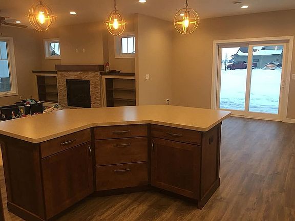 One level, 3 bedroom, 2 bath. Floor heat, natural gas forced air furnace, natural gas fireplace, 3-stall heated garage. Master suite has walk-in closet and large walk-in shower. Kitchen features gas cooktop, double electric ovens, large island and large walk-in pantry. Outdoor patio with natural gas hookup for grill. Home is on one and one-half lots with landscaping completed.