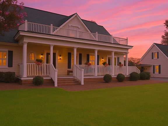 A remarkable equestrian estate on more than 29 acres, this Southern Living home reflects a thoughtful connection to land and lifestyle. Privately sited at the end of a gated drive, the residence features wraparound porches and expansive decking that embrace the surrounding farmland. The main house offers 10-foot ceilings, hardwood floors, custom trim, and abundant natural light through French doors and tall windows. A floor-to-ceiling stone fireplace anchors the cathedral-ceiling great room, with seamless flow into the keeping room, kitchen and breakfast area. The chef’s kitchen showcases knotty pine cabinetry, stainless-steel appliances, quartz countertops, a walk-in pantry, built-in desk and built-n bench with breakfast table. The main-level primary suite includes a spa-inspired bath, soaking tub, large frameless shower and oversized walk-in closet. Upstairs are two guest suites, private baths, walk-in closets and a flexible bonus room. Plenty of storage space.