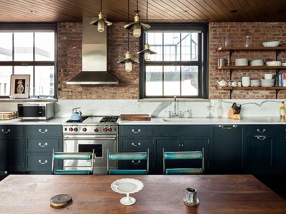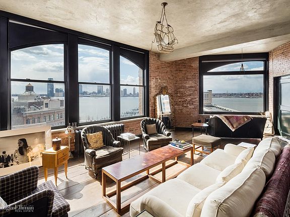 Perched on top of one of the most iconic lofts buildings downtown, this property has been gut renovated with the highest level of finishes and attention to detail. This two bedroom, one and a half baths has been furnished with the finest mix of modern pieces and antiquities and shall appeal to the most sophisticated of palates. The private elevator entrance leads you into the large open plan living area with a sizable kitchen, dining, and lounge area. The fully equipped windowed kitchen features Wolf and SubZero appliances, marble countertops, and generous cabinets adjacent to the dining area. The oversized arched windows provide south west exposure allowing for very generous sunlight throughout the day, not to mention stunning river views. The master suite has a spacious layout easily fitting a king size bed with the brand new en-suite master bath beautifully outfitted with free standing vintage clawfoot soaking tub, separate shower, custom mosaic tiled floors, and heated towel rack. 11 foot ceilings and wide planked custom wood flooring throughout, top of the line Electrolux washer/dryer, north/south/west exposures, central air & heat and a state of the art security system complete this rare offering.