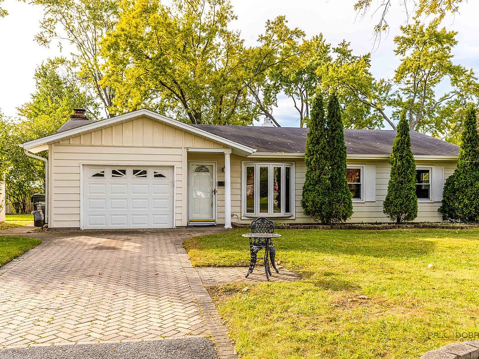 MOVE-IN READY! This beautifully updated corner-lot ranch in the desirable Westfield subdivision instantly feels like home the moment you walk through the door. Warm wood laminate floors flow throughout the entry, drawing you into a sun-drenched living room where a large bay window frames views of the front yard and fills the space with natural light. Crisp crown molding and a fresh, modern color palette create a timeless backdrop for both quiet mornings and lively gatherings. The heart of the home unfolds in the open kitchen, eating area, and family room; an inviting space designed for connection and comfort. The kitchen showcases 42" maple cabinetry, sleek stainless-steel appliances, a Viking stove and hood, and generous counter space for everyday meal prep or weekend baking. The peninsula with breakfast bar seating invites conversation over coffee or a casual bite to eat, while the adjacent family room, accented by a stunning marble wood-burning fireplace sets the tone for cozy evenings spent by a warm fire. Slide open the door and extend your gathering outdoors to your private backyard. Picture yourself grilling on the patio on warm summer nights or unwinding after a long day. A convenient shed provides extra storage, keeping everything neat and tidy. When it's time to unwind, head back inside where the main bedroom offers a peaceful escape with a private ensuite bath and skylights that let natural light pour in. Two additional bedrooms with generous closets, a second full bath, and a laundry room complete this home. Conveniently located minutes from schools, parks, and shopping centers. Schedule your showing today.