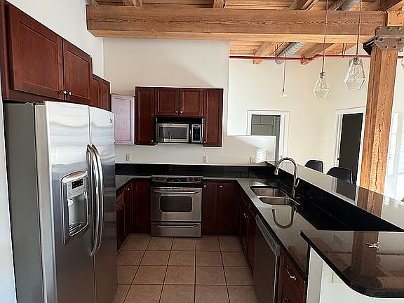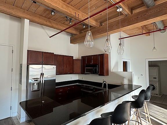 Step inside to find exposed brick walls, high ceilings, and large windows that fill the space with natural light. The kitchen features granite countertops, stainless steel appliances, and timeless cabinetry that complements the loft’s industrial character.