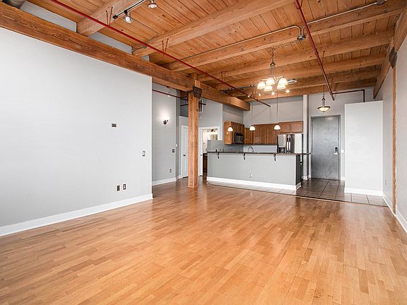 Fantastic opportunity in Baker Lofts- Main Floor, close to entrance, 2 bedroom condo that includes a GARAGE and additional storage closet! Exposed Brick, wood floors, soaking tub, Stainless Kitchen appliances, NEW refrigerator & dishwasher, washer/dryer, and wood flooring. Love the modern urban condo living at its finest. Amenities include patio, grills, theatre room, pool table room, conference room! Salon on site and gym that you can join. All available to you!