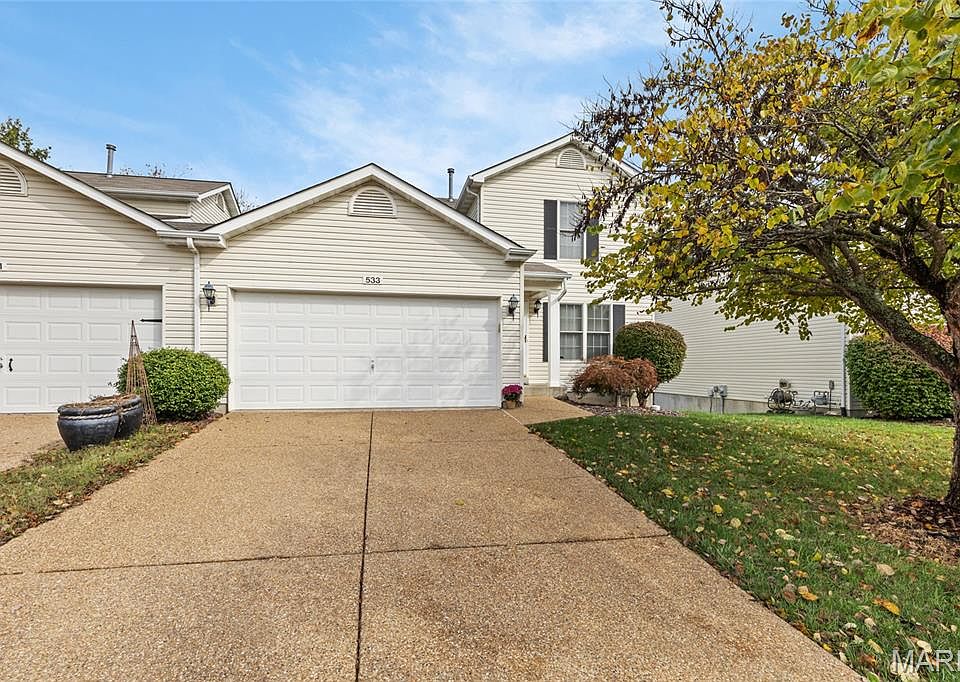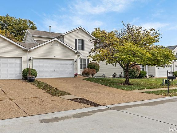 Affordable townhome in Stone Meadows. This move in ready, single owner home has no monthly HOA! Main level has bright living area, large kitchen with plenty of cabinets and counter space, stainless steel appliances (fridge to stay). Breakfast area looks out to the newer deck and private back yard. Spacious main floor laundry/mud room, half bath and access to the 2 car garage. Upstairs you will find your Primary Bedroom, primary bathroom, a loft area, generously sized second bedroom and full hall bath. Your lower level is a walkout providing access to your private lot and patio. Enjoy your community pools and clubhouse that are in easy walking distance. You are also just steps from timberland high school! All while just being minutes from I-64, Hwy N and Wentzville Pkwy and the Shoppes at Hawk Ridge.