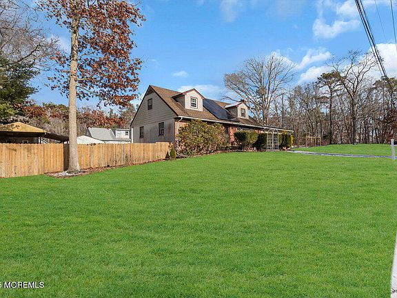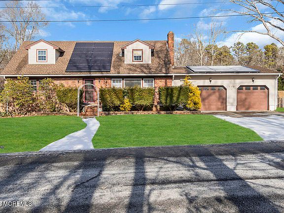 this stunning and spacious Cape Cod home is located on a desirable corner lot. This 4-bedroom, 2.5-bath property offers plenty of room to grow and entertain. The home also includes a roof installed in 2023, solar panels for energy efficiency, and a brand-new HVAC system and hot water heater. The main level boasts scratch-proof and water-resistant vinyl flooring, complemented by a large living and dining room with a cozy wood-burning fireplace. The updated kitchen features cabinetry, granite countertops, and stainless steel appliances. Upstairs, the second-floor bathroom has been remodeled to include a tiled shower with a glass door, dual sinks, and heated tile floors, offering a spa-like retreat. The fully finished basement is complete with a full gas kitchen, peninsula island, living area, three bonus rooms, and a half bath, providing endless possibilities for use as an in-law suite, home office, gym, or entertainment space. Windows in basement add natural light, while ample storage ensures a clutter-free home. Outside, you'll find a covered carport that doubles as a small boat port, a 16x16 shed, and a six-zone sprinkler system to maintain the landscaping. Located 8 minutes from historic Smithville, 15 minutes from Atlantic City, and close to beaches, shopping, and major roadways, this property offers the perfect blend of tranquility and accessibility. Don't miss the chance to make this beautiful home your own!