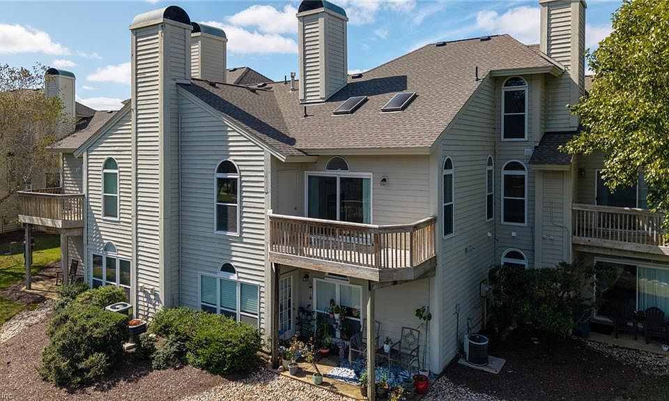 Waterfront living in Great Bridge! Wonderful 3-bedroom, low-maintenance condo that has been completely remodeled, ready for you to move in. Open concept living area with vaulted ceilings and sweeping lakefront views. Beautiful shiplap craftsmanship fireplace in the living room, open to the eat-in kitchen with updated cabinetry, granite counters, and new stainless steel appliances. Private primary suite on the second level with vaulted ceiling, walk-in closet, and updated spa-like bath w/stand up tiled shower. Two spare bedrooms on the first level, both with ample closet space. The common bath has a new vanity, tub insert, and fixtures. Condo fee includes exterior maintenance (to include roof and vinyl), landscaping, private trash collection, clubhouse, & community pool! Top-rated Great Bridge schools and unbeatable location. Come see this move in ready condo today!