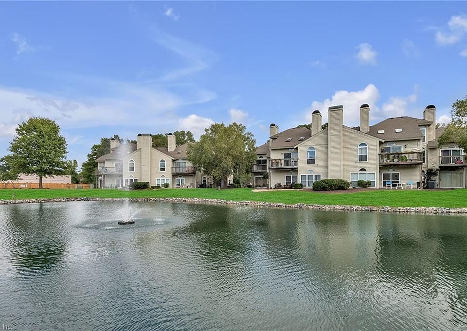 Maintenance-free living and completely move-in ready in the heart of Great Bridge! Three-bedroom, spacious condo with new vinyl plank flooring throughout the open concept living area. Sweeping vaulted ceilings and fireplace with shiplap trimwork. eat in kitchen with refinished cabinetry, new stainless appliances, and granite counters. Private primary suite on the second level with waterfront views, walk-in closet, and private bath with stand-up shower. Two bedrooms downstairs with shared common bath, back bedroom could be first-level primary with private access to bath from bedroom! Walk in attic and utility closet makes for great storage. Breathtaking views from your private porch! Condo fee includes exterior maintenance (to include roof and vinyl), landscaping, private trash collection, clubhouse, & community pool! Top-rated Great Bridge schools and unbeatable location. Come see this move in ready condo today!