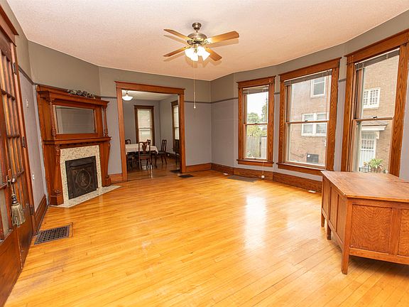 Looking for a home with charm and beautiful craftsmanship? Look no further! The moment you walk in the door you will see the beautiful staircase, inlaid tile at the entry way. gorgeous woodwork throughout, hard wood floors and a beautiful wood burning fireplace . If you are in need of space this home will not disappoint. The rooms are spacious. The second floor has 3 bedrooms and a full bath. The third floor is completely finished. It would make an amazing master suite, mother in law suite or maybe you have a college student that would like his/her private living space. It offers a kitchenette and a full bathroom and it's own washer/ dryer hook up!. This is the perfect multigenerational home with space for everyone! Lots of parking available with the drive through drive way . Room measurements are approximate; buyer to verify