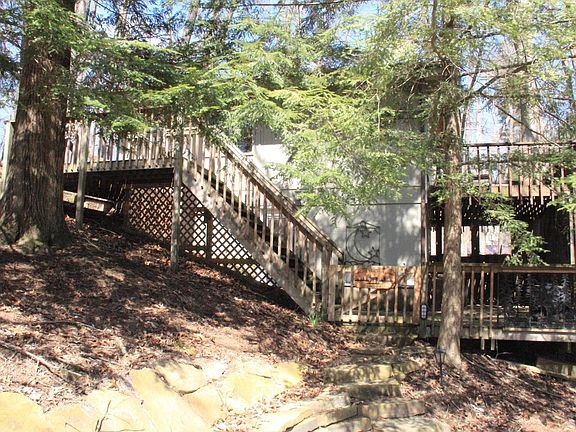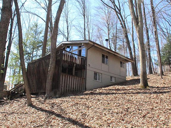 New 2nd/Direct2Deck Driveway, Furnished, 3 Wooded Lots..Hide-A-Way Hills Private Resort Community..So near southeast Ohio's famous Hocking Hills Region, HAH Club has been a ''best-kept-secret'' since 1961. Built in the 60's..here you’ll discover a never-out-of-style vacation home floor design, enhanced by outdoor living spaces up & down,along w/interior updates that include recessed & (new) track lighting plus paint & decorator accents,remodeled bath & kitchen,newer windows,wood French Doors,ceramic tile. Also the warmth of original pine floors & beamed ceiling,XL breakfast bar,wood stairs & railing. Efficient bright kitchen w/built-in oven,cooktop,range & dishwasher. Decking up+down to relax & enjoy it all,lots of windows to invite views of nature inside.Storage spaces,guest BR/den,hot t