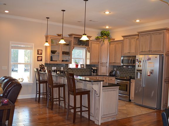 This beautiful home is located in the quiet Live Oak subdivision. The home has a split floor plan with a open area living space. The dining room, living room and foyer all have scraped hard wood floors. The kitchen has custom glazed cabinets with granite counter tops glass backsplash and large tile floors. All living area master bedroom and master bath have crown molding. This home has lots of windows for alot of natural light and is very energy efficient. The master bath also has glazed vanity with double sinks. It also has a custom rain fall shower that tiles all the way to ceiling. It has a separate bath with tile backsplash and a cute chandelier above it. Master bedroom is big enough for king size bed and over sized furniture. It hasa large walk in closet. Spare bathroom has nice vanity with double sinks. Spare bedrooms both have big windows to alow alot of natural light. Bonus room is perfect for fourth bedroom, man cave, or game room. It has a closet and also its own heating and cooling unit. The outside has front and back covered porches. The front is customized with five stacked stone columns. This yard is landscaped beautifully. It has full yard sod and full yard irrigation to keep it green in the hot summers. The garage is upgraded with vinyl siding for easy cleaning. This house is a MUST SEE!!